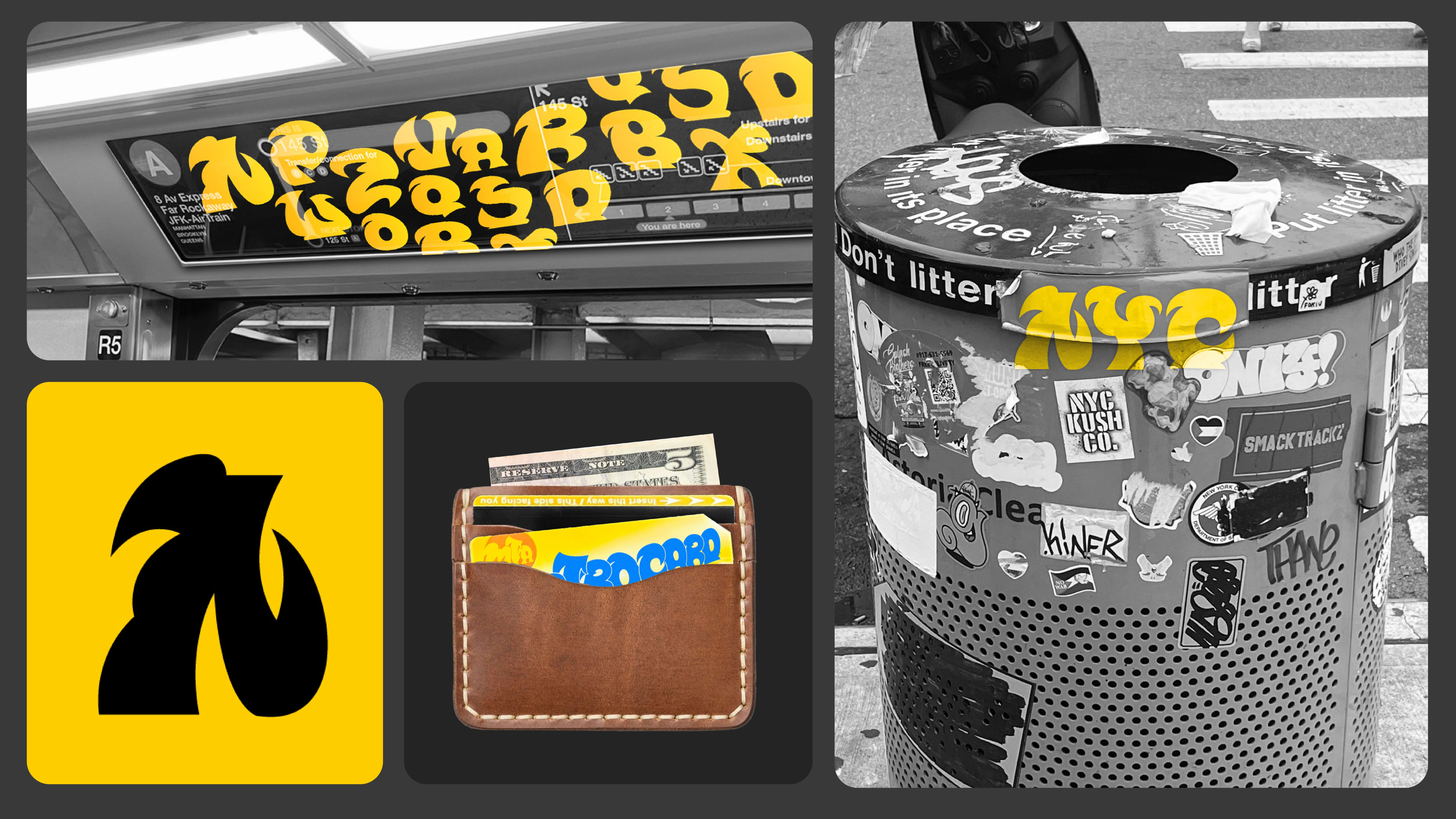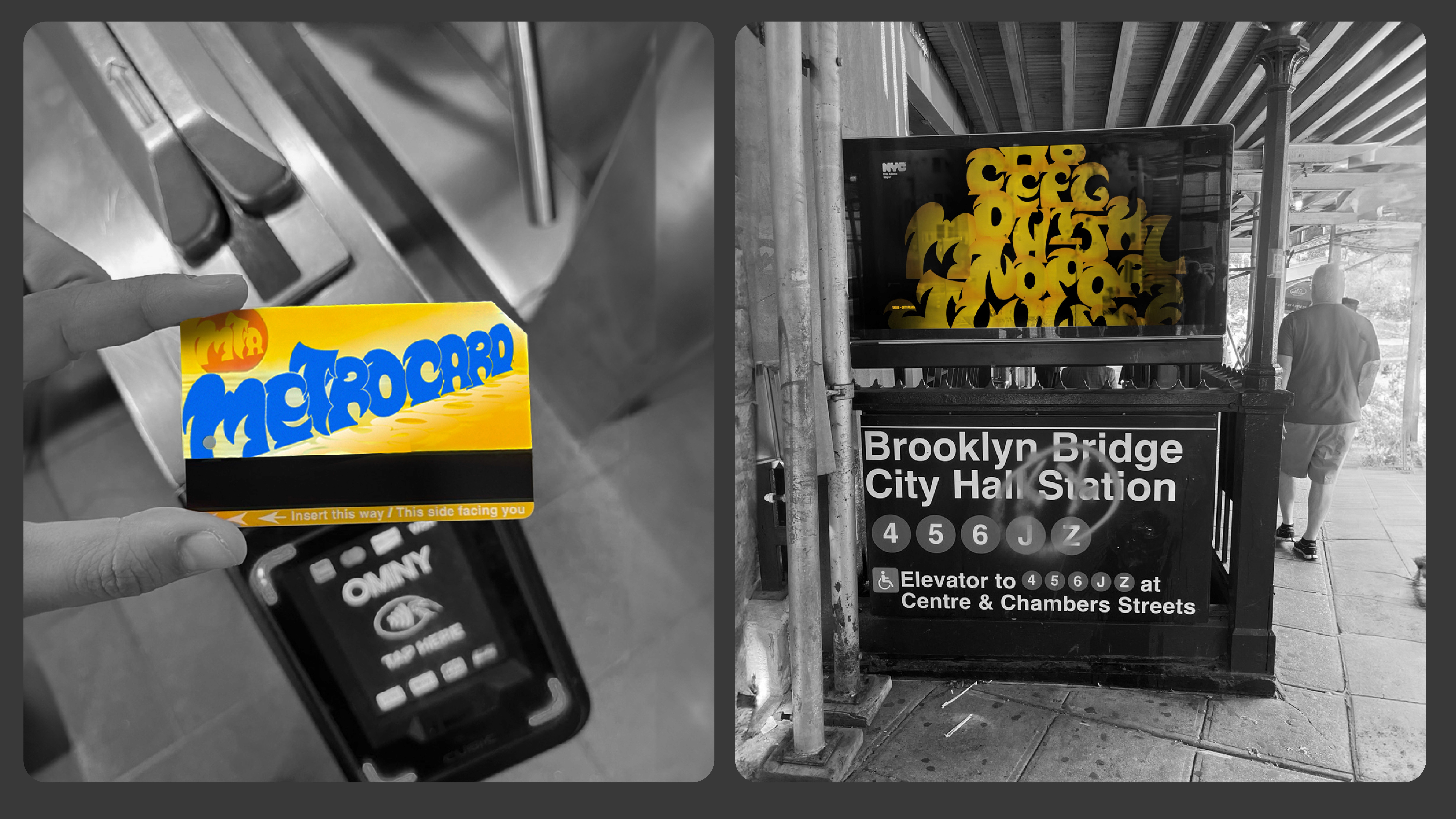 Inspired by the raw energy of the New York subway, this project expresses its free rhythm through sharp, stretched typography. The type features uncontrolled edges and elongated forms, and is applied by replacing the original text on the MetroCard as part of the design.